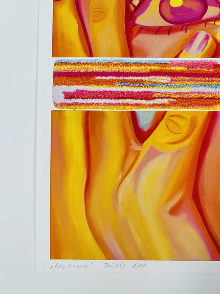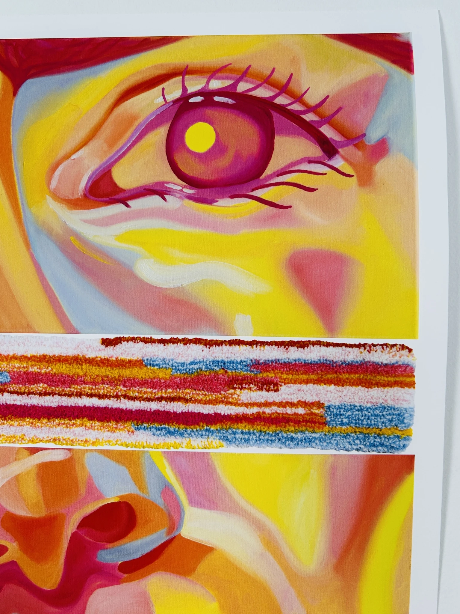 High quality giclee print of an original oil painting + tufting by Moona Saul "Understanding".